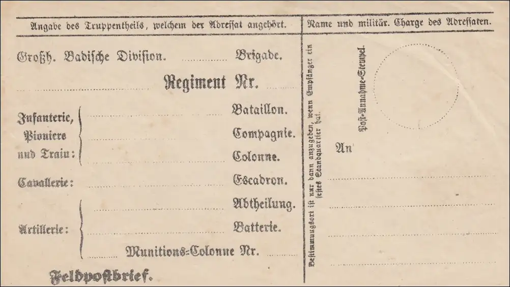 Polen: Feldpostbrief Großherzogliche Badische Division, Vordruck, ungebraucht