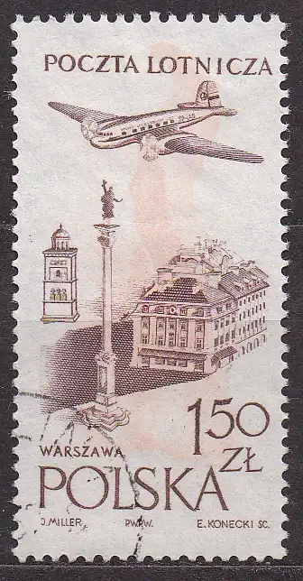 Polen, Mi-Nr. 1036 gest., Flugzeug über Warschau