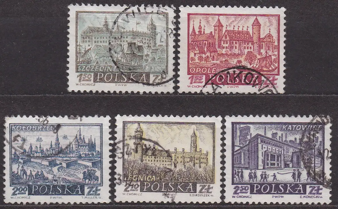 Polen, Mi-Nr. 1211, 1212, 1213, 1214 + 1215 gest., Historische Städte