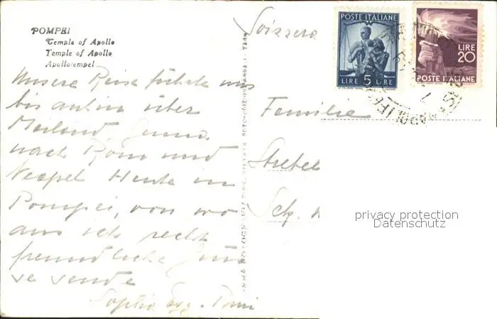 Pompei Tempio di Apollo Tempel Antike Staette Pompei postalisch gelaufen 1921-1965 Erhaltung siehe scans Alte Ansichtskarte Postkarte Frierer