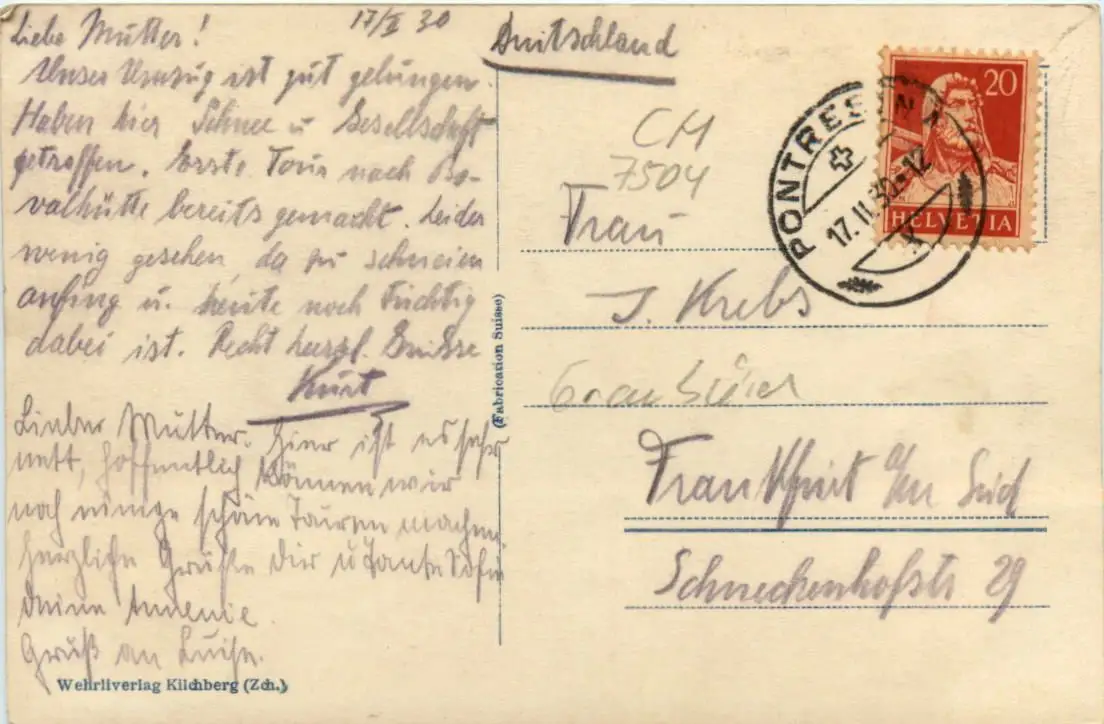 Danke. Alles Bestens. Können Sie mir allenfalls mitteilen, aus welchem Jahr die Postkarte stammt? Besten Dank.