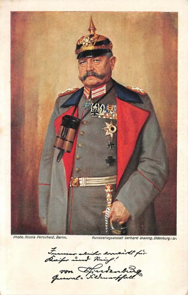 Portrait Generalfeldmarschall Hindenburg mit Pickelhaube Patriotika Postkarte AK