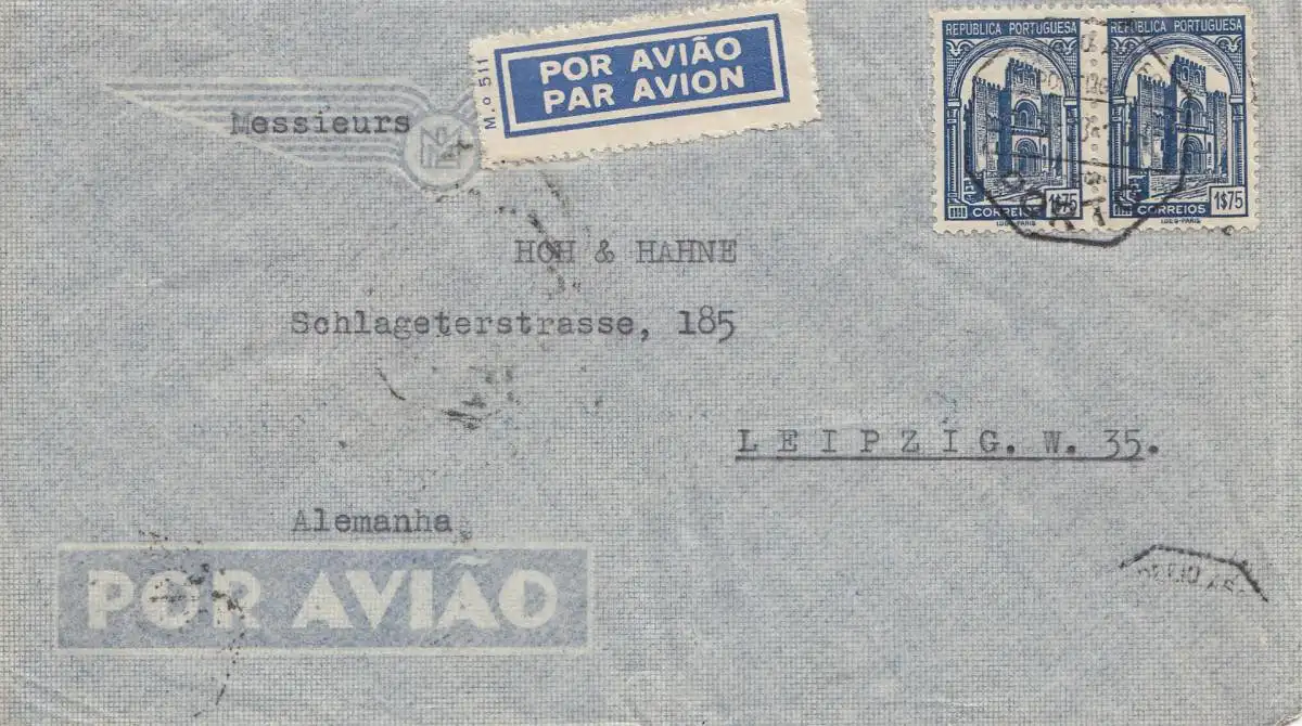 Portugal: 1938: Luftpost Porto, nach Leipzig