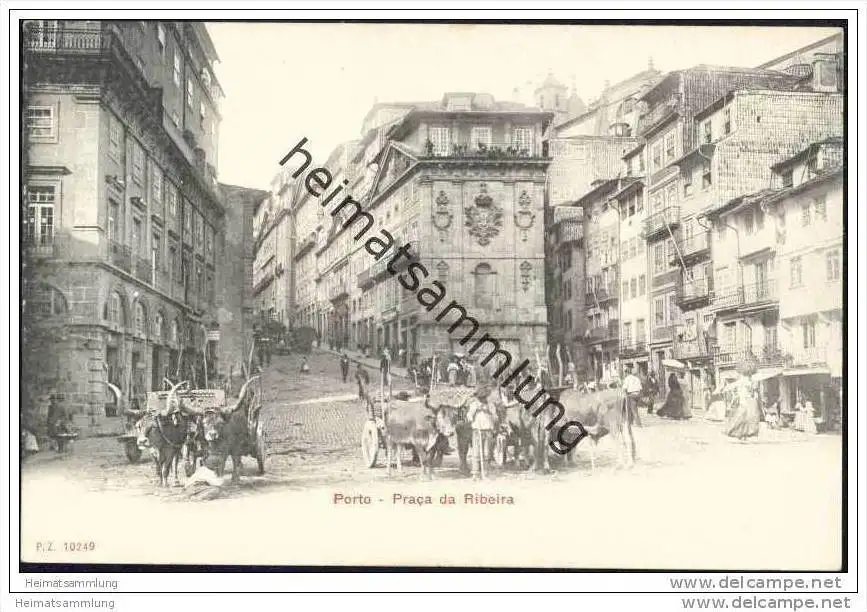Portuguesa - Porto - Praca da Ribeira ca. 1900 - Ochsengespanne