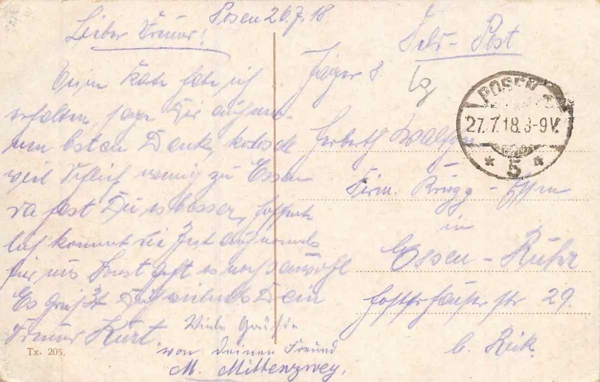 Posen Am Hauptbahnhof Bahnpostamt Feldpostkarte AK 1918