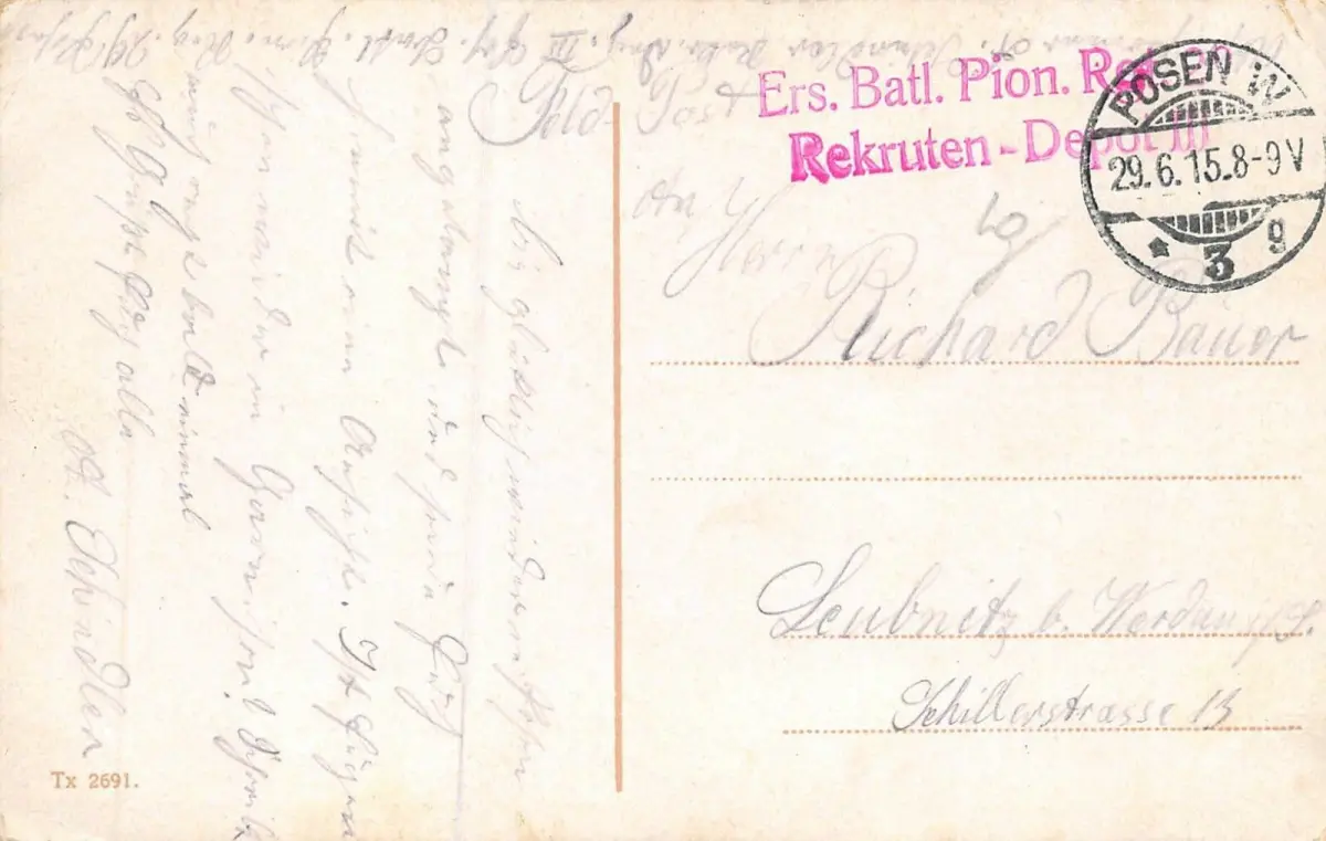Rückseite: gelaufen 1915 von Posen W.