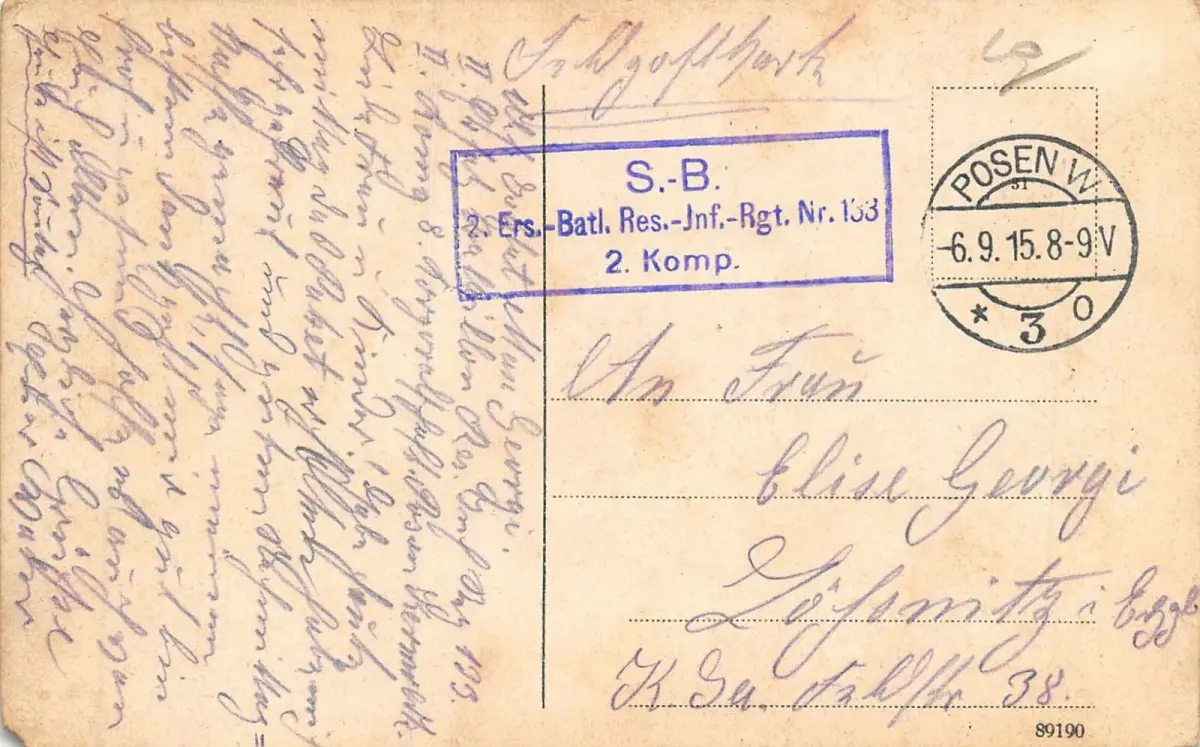 Rückseite: gelaufen 1915 von Posen W