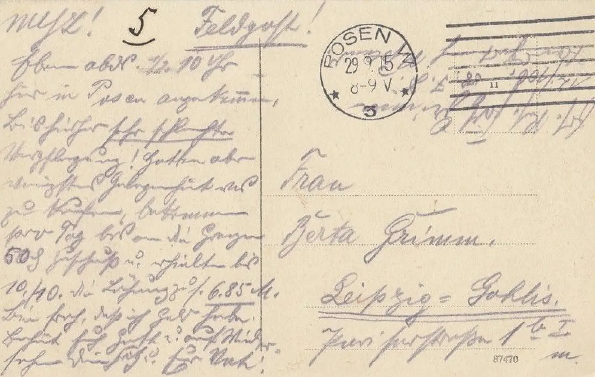 Rückseite: gelaufen 29.09.1915 Posen