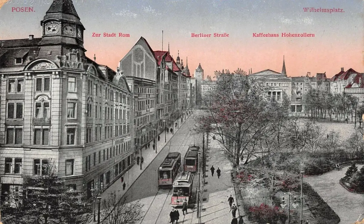 Posen Wilhelmsplatz Berliner Straße Kaffeehaus Hohenzollern Feldpost AK 1917