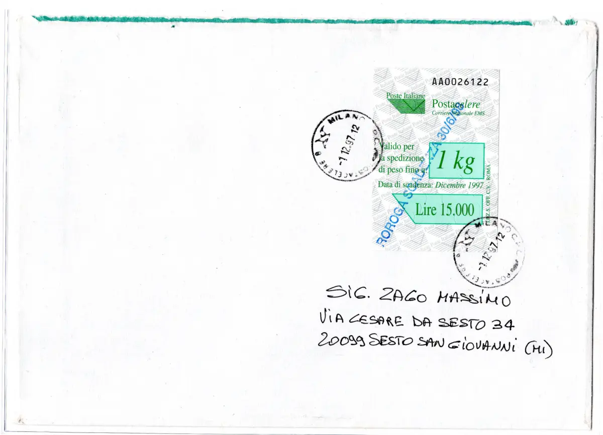 Umschlag - Schnellpost 1 kg. Nr. 4 mit Stempel Verlängerung Ablauf 30.6.98 in blau auf Postumschlag von Mailand nach Sesto San Giovanni am 1.12.97 - Seltene Postnutzung in kurzer Gültigkeitsdauer Cod. 426/17