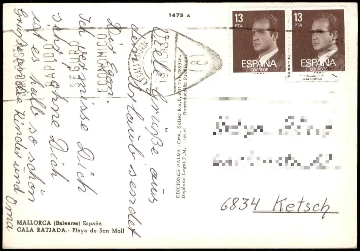 Postale Cala Ratjada Playa de Son Moll 1983