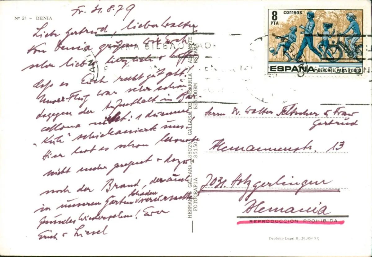 Postale Dénia Denia Luftbild 1979