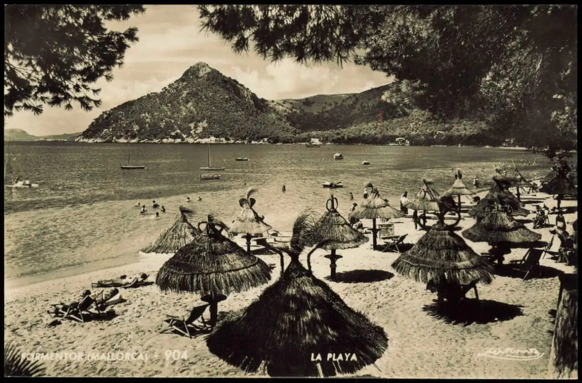 Postale Formentor Strandleben Mallorca 1961