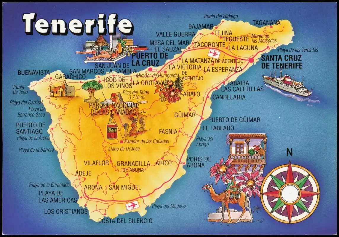 Postale .Teneriffa Tenerife Spanien Landkarte Map Übersichtskarte 2000