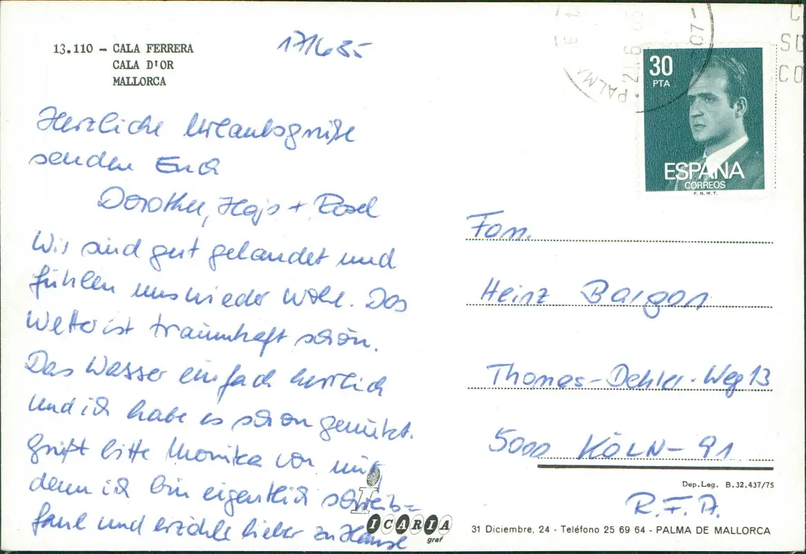 Postales CALA D' OR Luftaufnahme CALA FERRERA CALA D'OR MALLORCA 1985