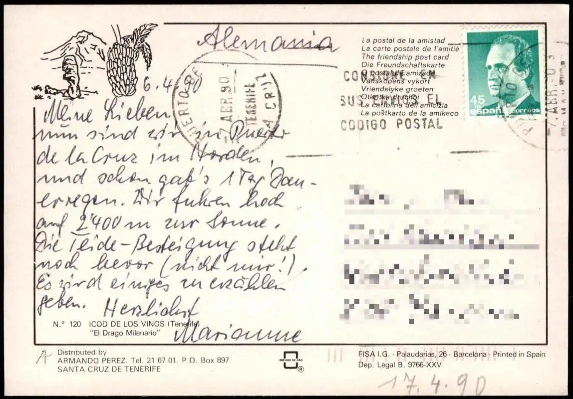 Postales .Teneriffa ICOD DE LOS VINOS Tenerife "El Drago Milenario" 1990 Kanaren Canaris