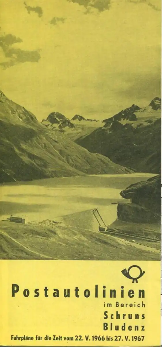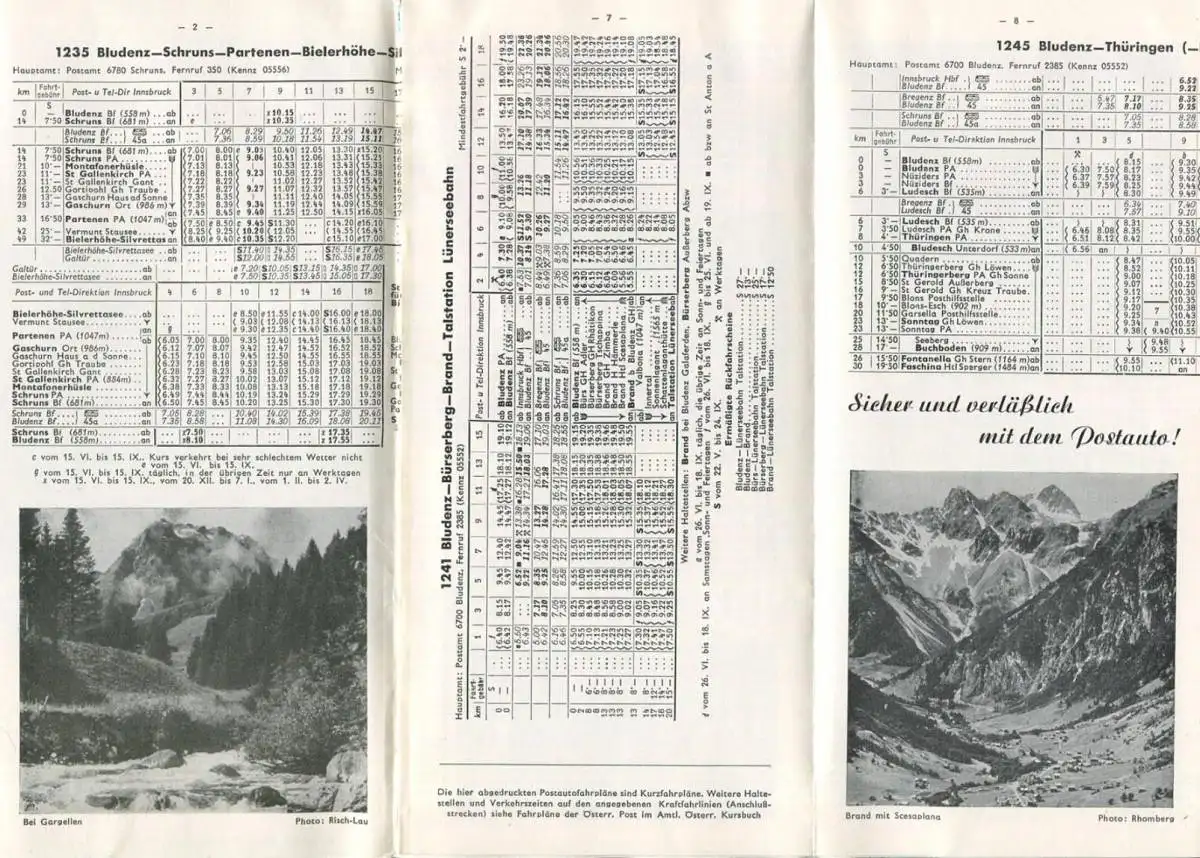 Postautolinien im Bereich Schruns Bludenz 1966 - Faltblatt mit 8 Abbildungen