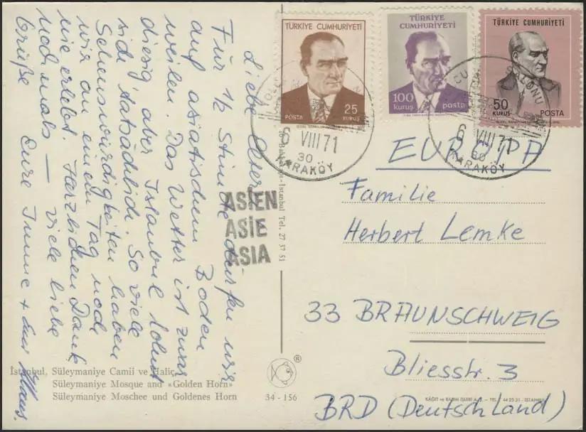 Ansichtskarte aus Istanbul: Moschee und Goldenes Horn