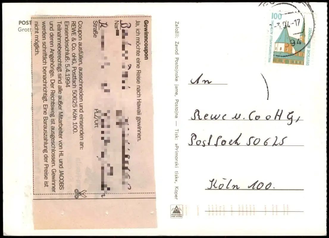 Postcard Adelsberg Postojna Eingang zur Grotte 1994