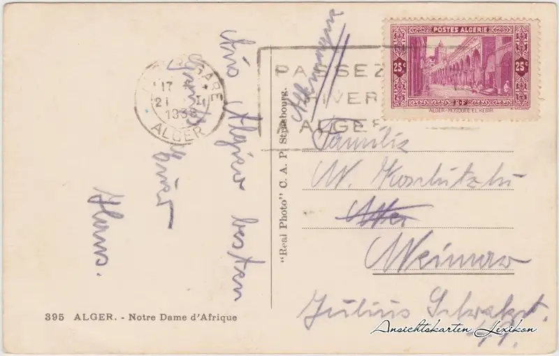 Postcard Algier دزاير Notre Dame d'Afrique 1938