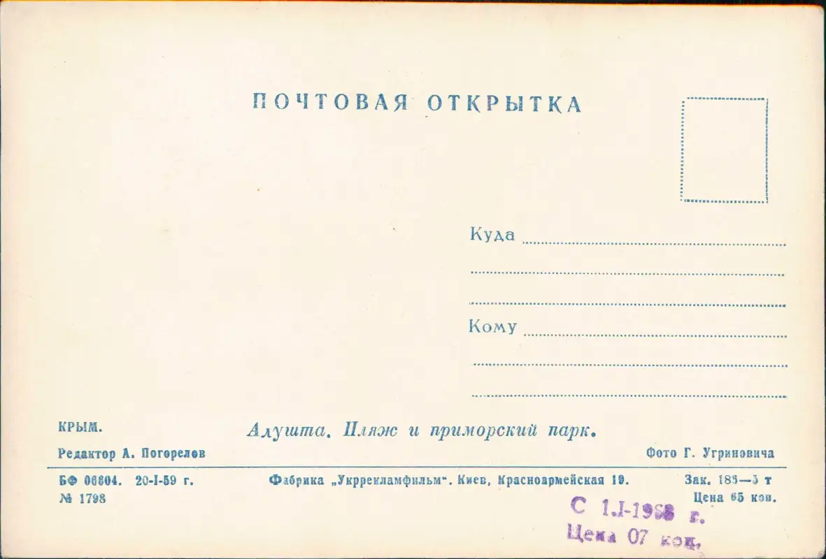Postcard Aluschta Алу́шта Strandpartie, Anlagen Krim Crimea 1963