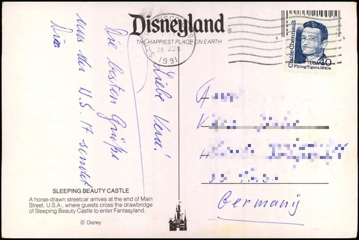 Postcard Anaheim Disneyland SLEEPING BEAUTY CASTLE 1991