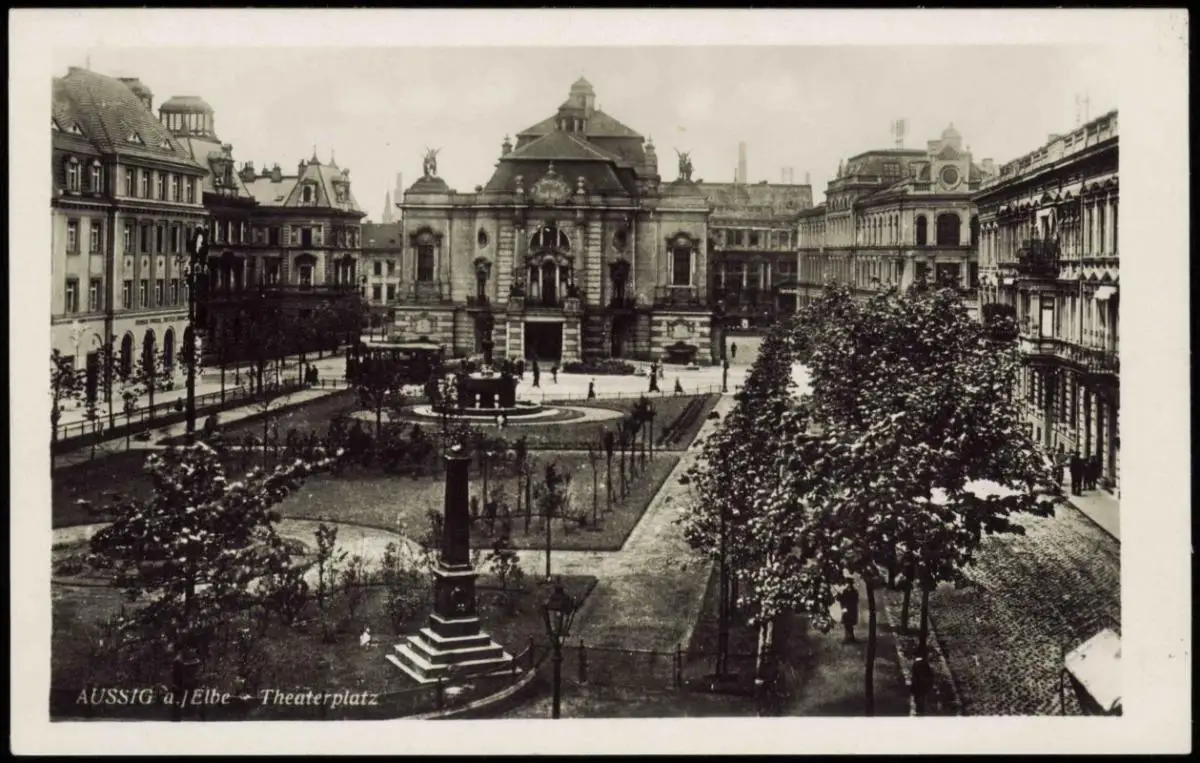 Postcard Aussig Ústí nad Labem (Ustji, Ustjiss) Theaterplatz 1932