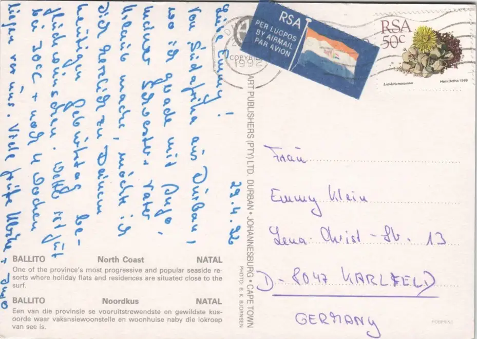 Postcard Ballito North Coast Beach, Strand, Luftbild Aerial View 1992