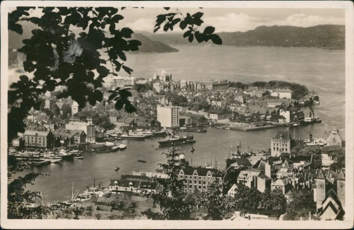 Postcard Bergen Bergen Stadt - Blick von Floien - Dampfer 1933