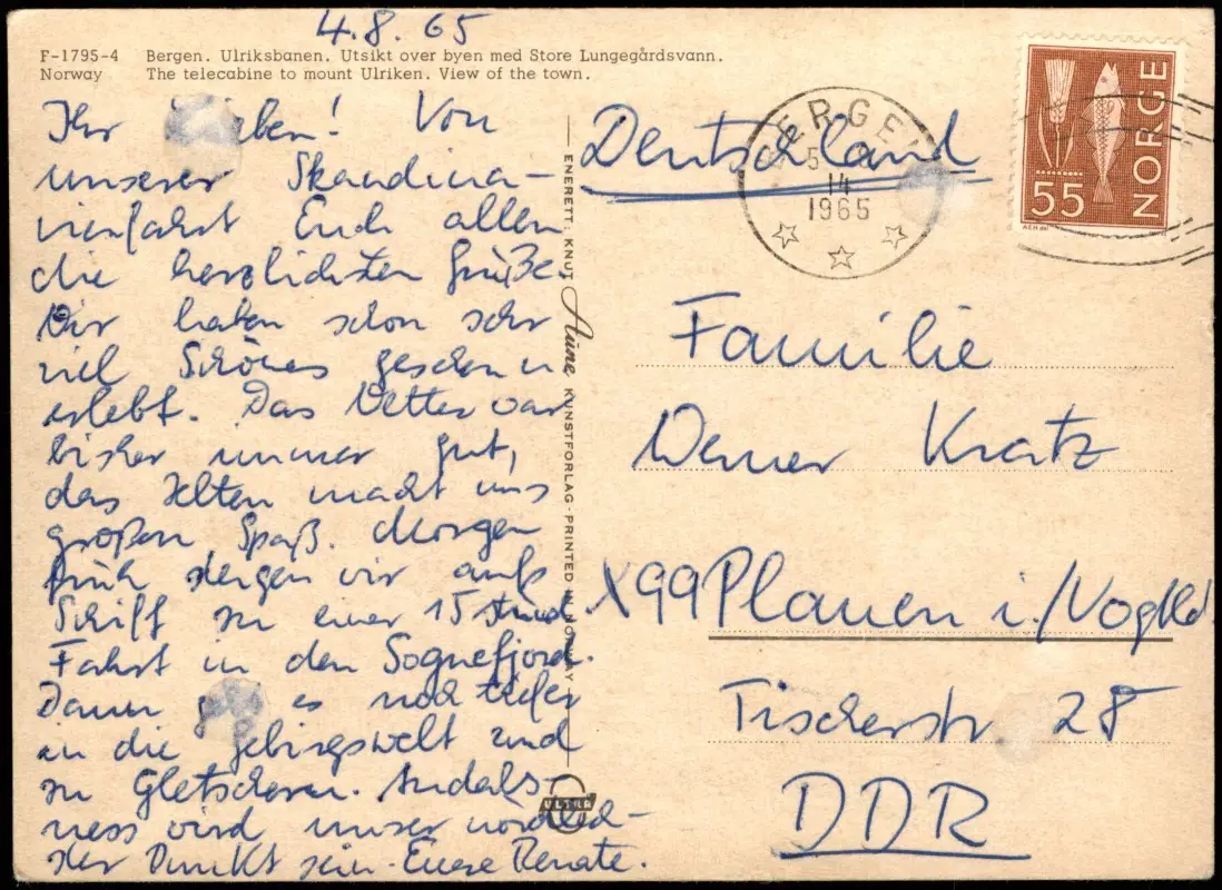 Postcard Bergen Bergen Ulriksbanen - Seilbahn 1965