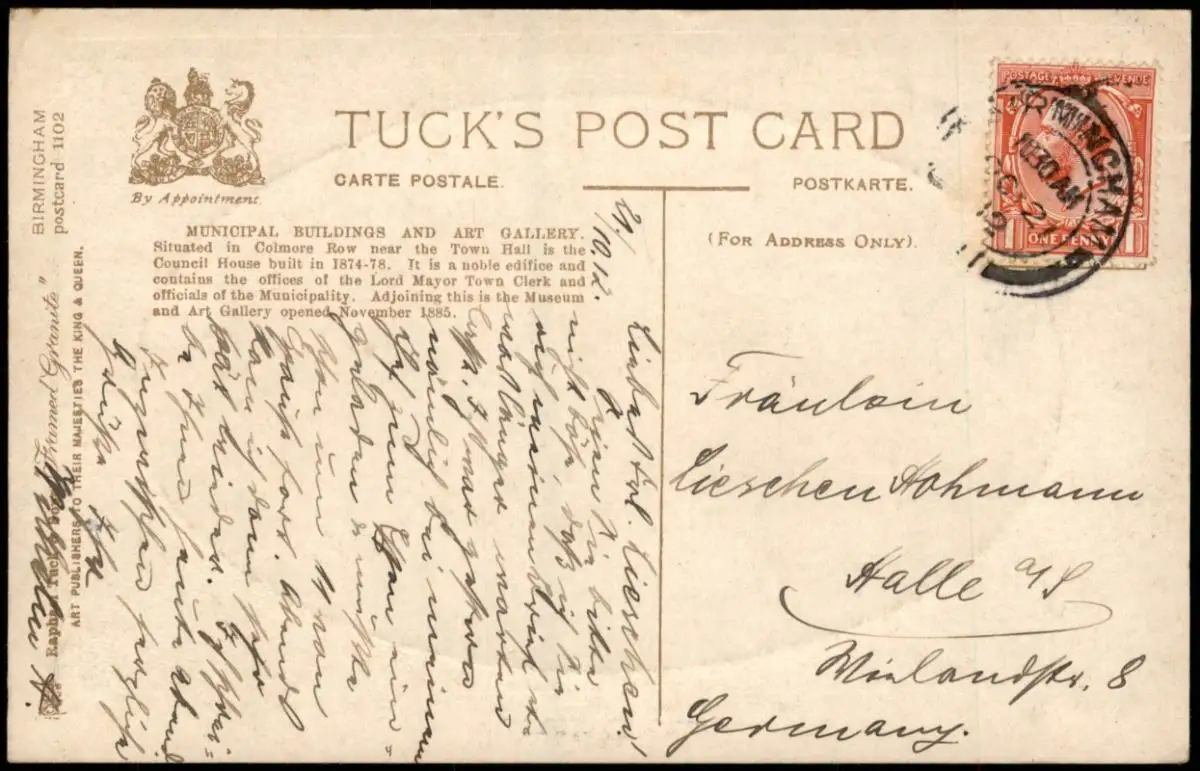 Postcard Birmingham Municipal Buildings 1912 Passepartout