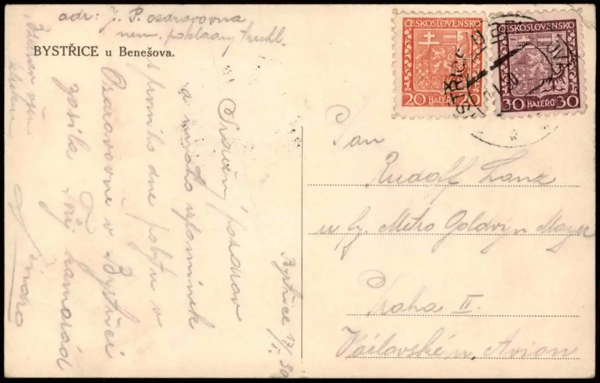 Postcard Bistritz (bei Beneschau) Bystřice u Benešova Stadtpartie 1930