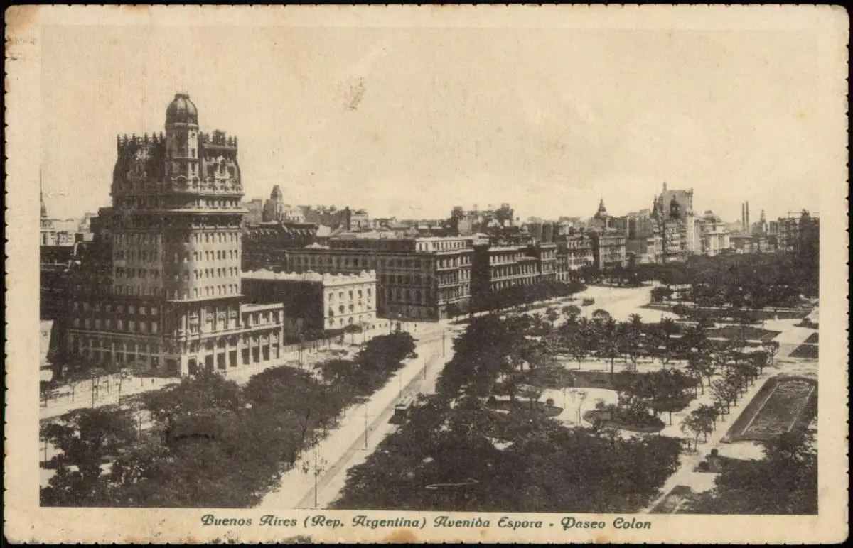 Postcard Buenos Aires Avenida Espora Paseo Colon, Straßen Panorma 1924