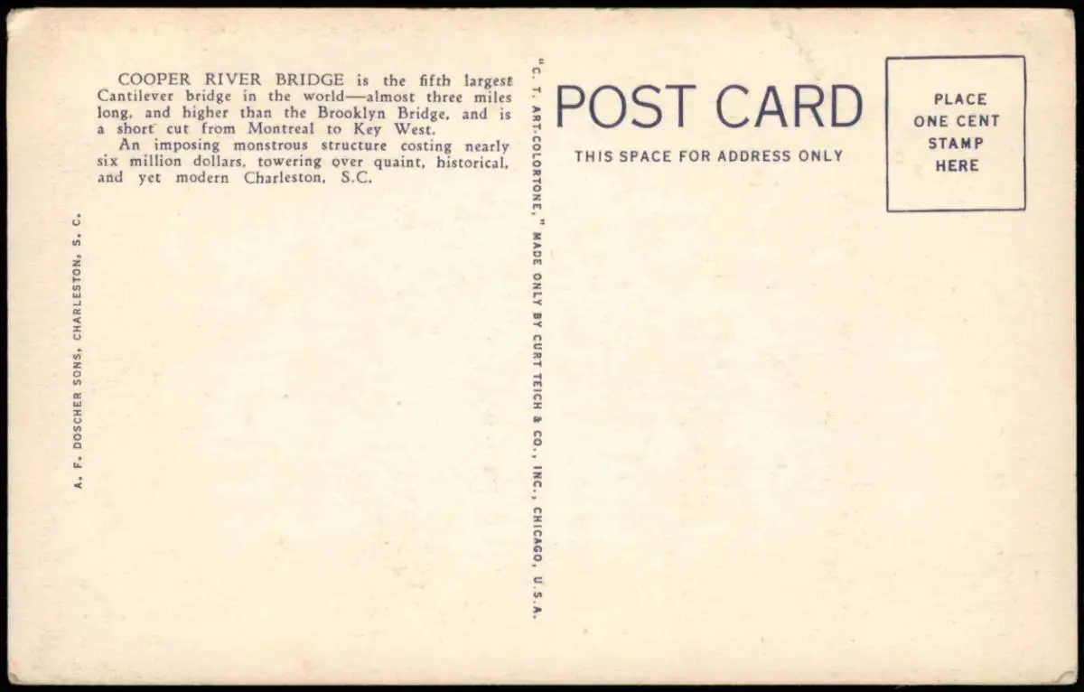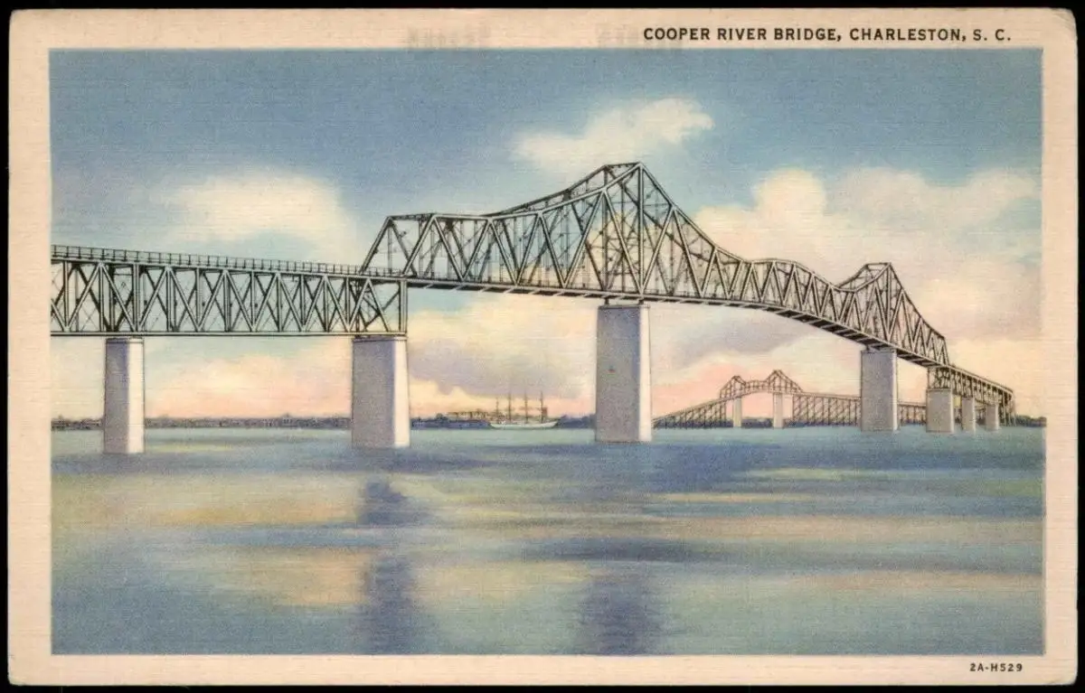 Postcard Charleston COOPER RIVER BRIDGE, CHARLESTON, USA 1930