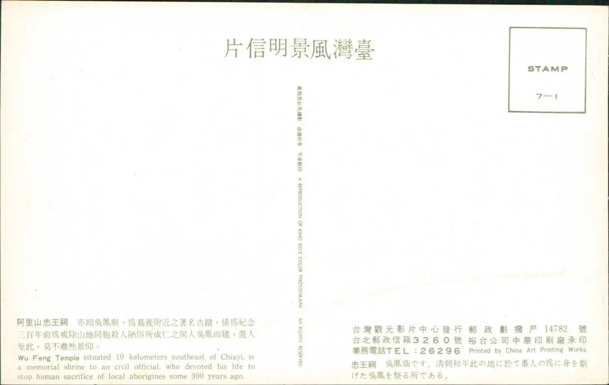 Postcard China (Allgemein) Wu Feng Temple in China 1970