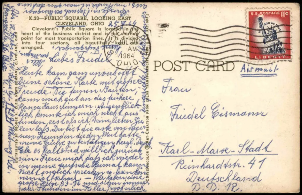 Postcard Cleveland Stadt-Ansicht City View Public Square 1964