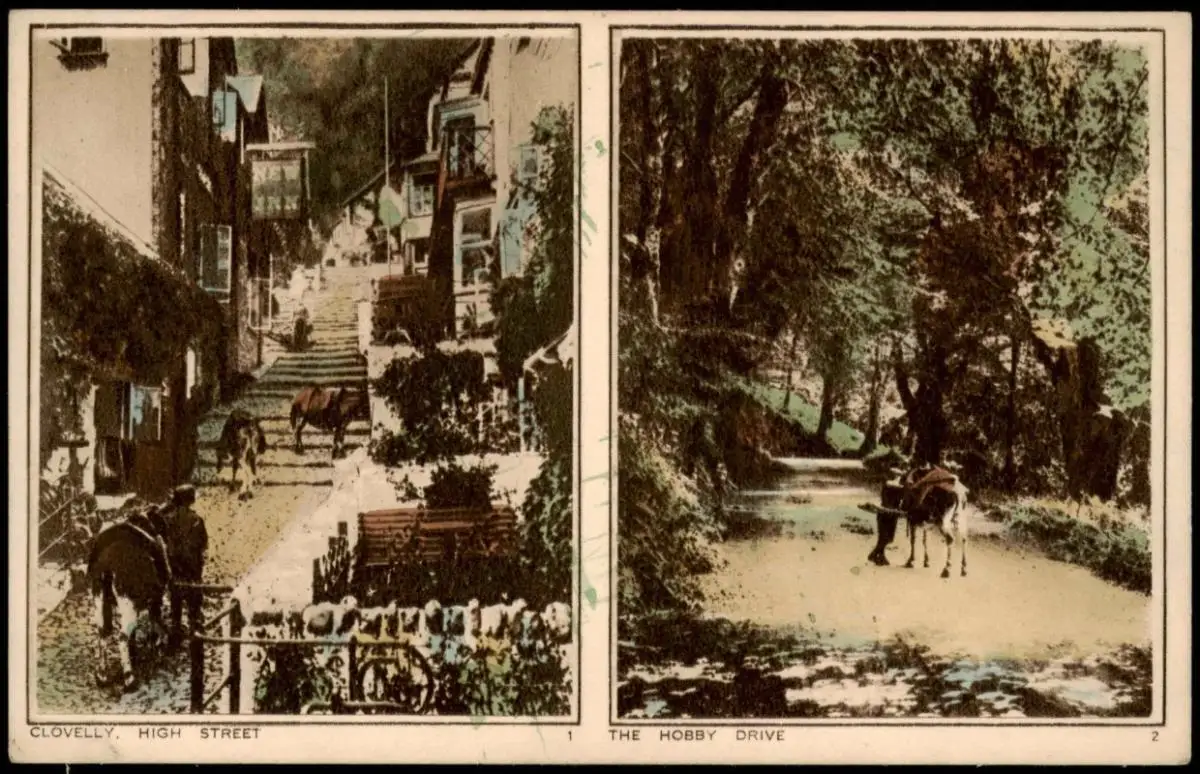 Postcard Clovelly (Devon) 2 Bild: High Street, The Hobby Drive 1922