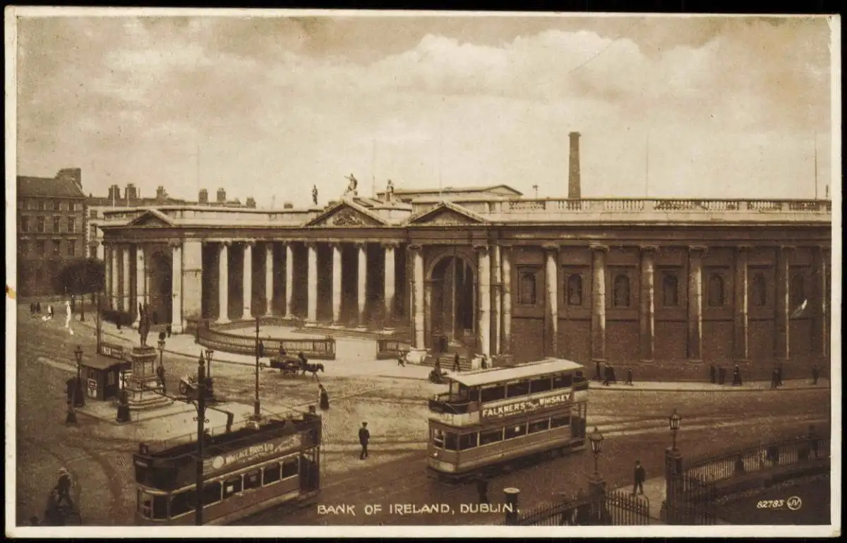Postcard Dublin Baile Átha Cliath Bank of Ireland Tram Straßenbahn 1928