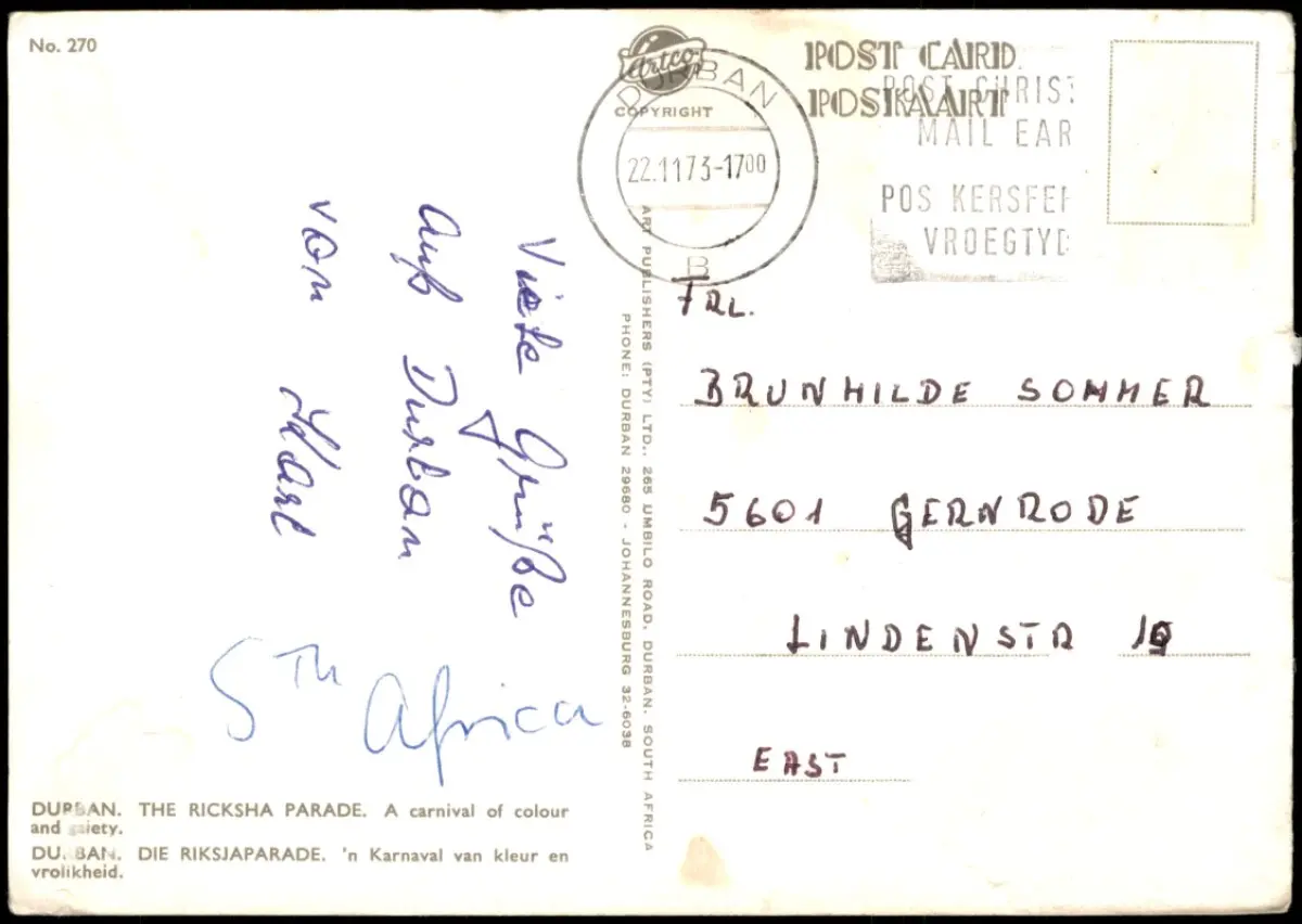 Postcard Durban Rikschaparade 1973