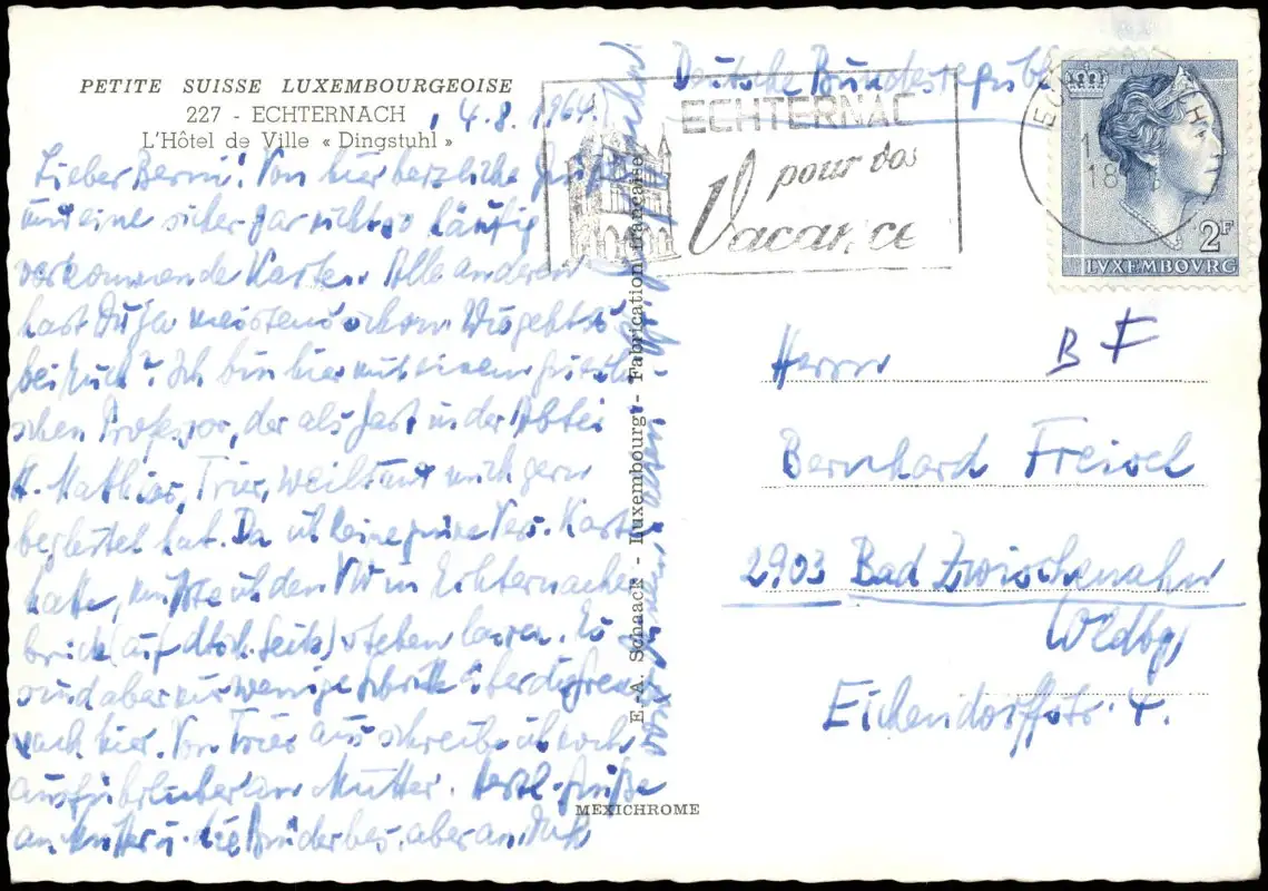 Postcard Echternach L'Hôtel de Ville Dingstuhl 1964