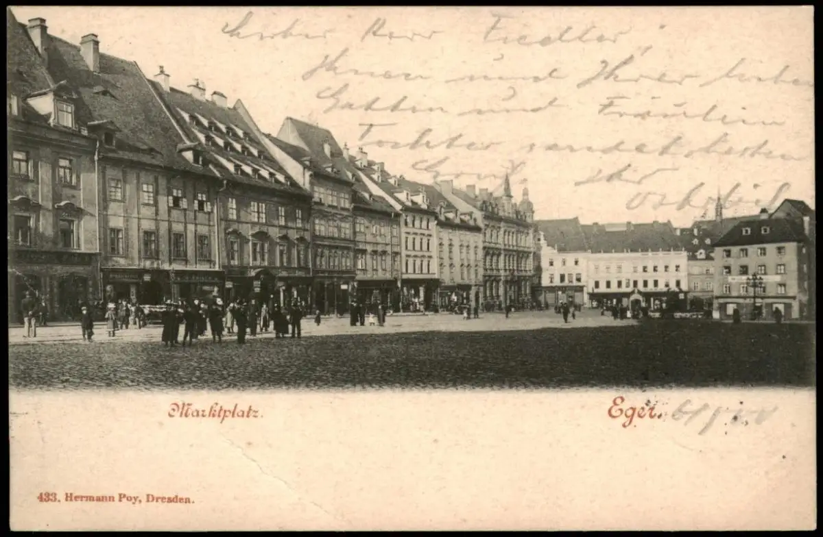 Postcard Eger Cheb Marktplatz, belebt 1900 gel. von Eger nach Leipzig Gohlis