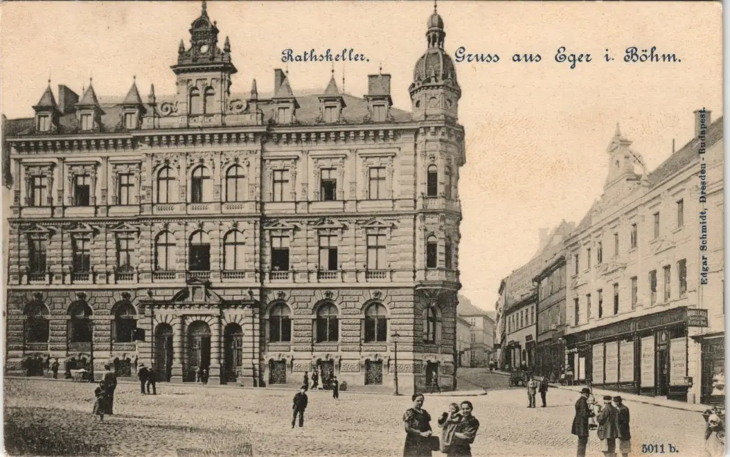 Postcard Eger Cheb Ratskeller - Straße, Geschäfte 1909
