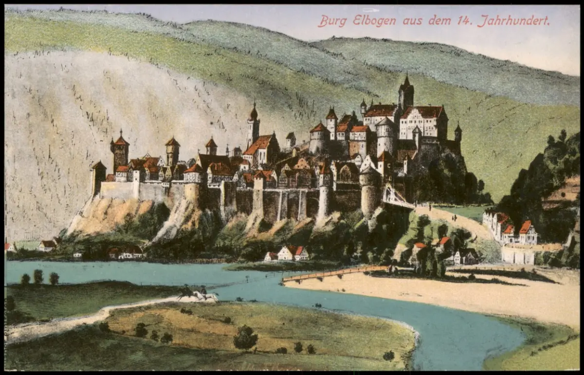 Postcard Elbogen (Eger) Loket Burg aus dem 14. Jh. b. Karlsbad 1914