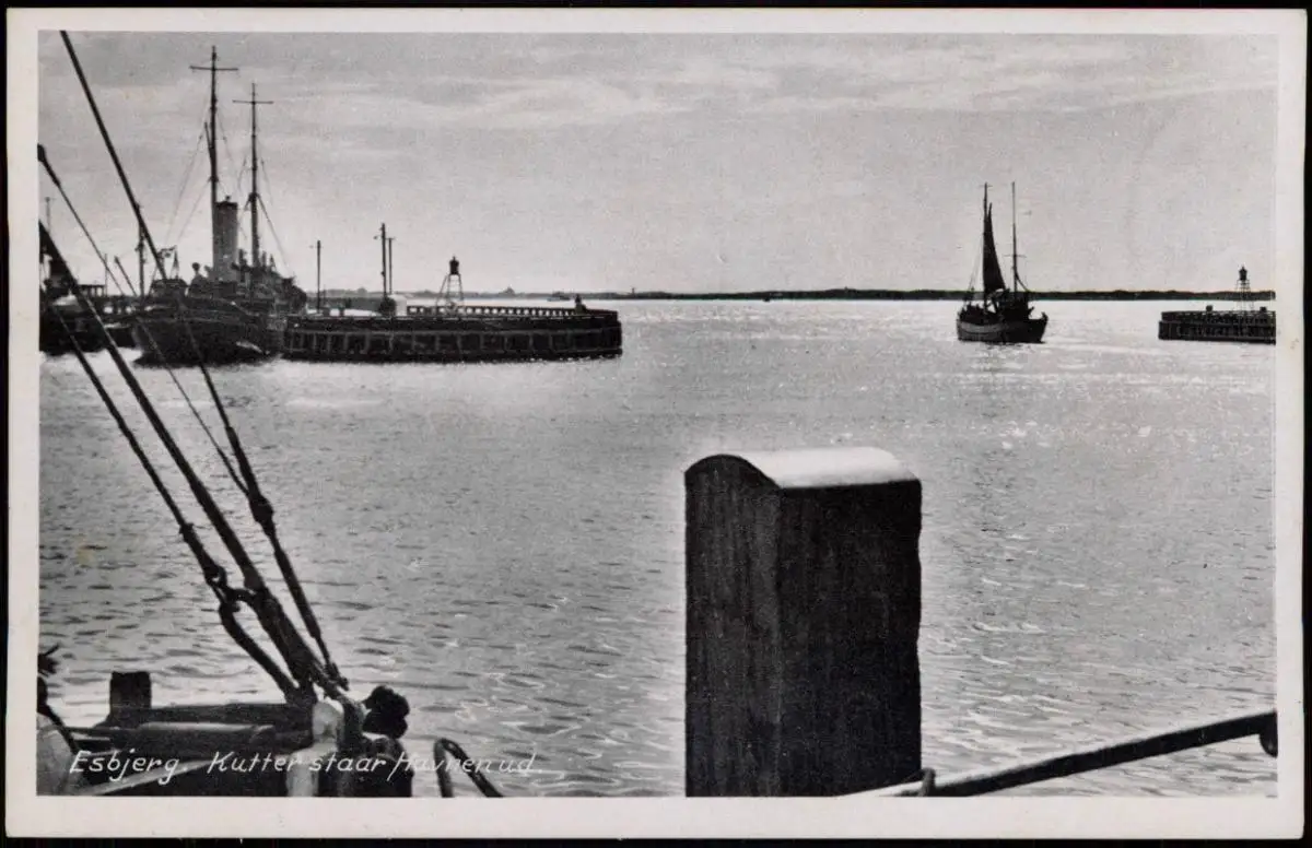 Postcard Esberg Esbjerg Kutter staar havnen, Hafen Partie 1930