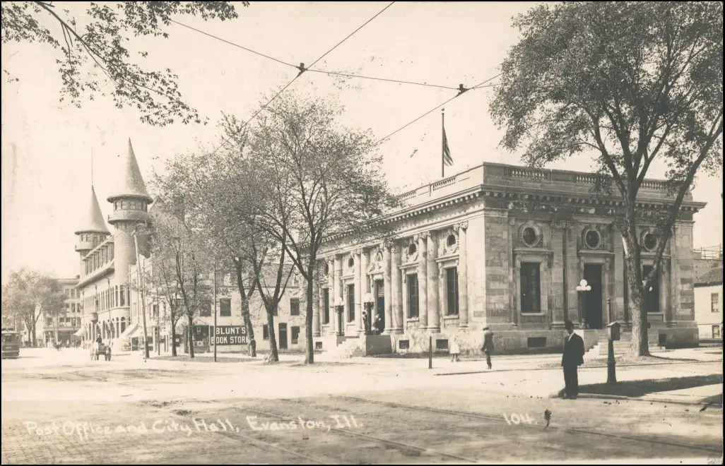 Postcard Evanston (Illinois) Street Postoffice/Straße Post 1912