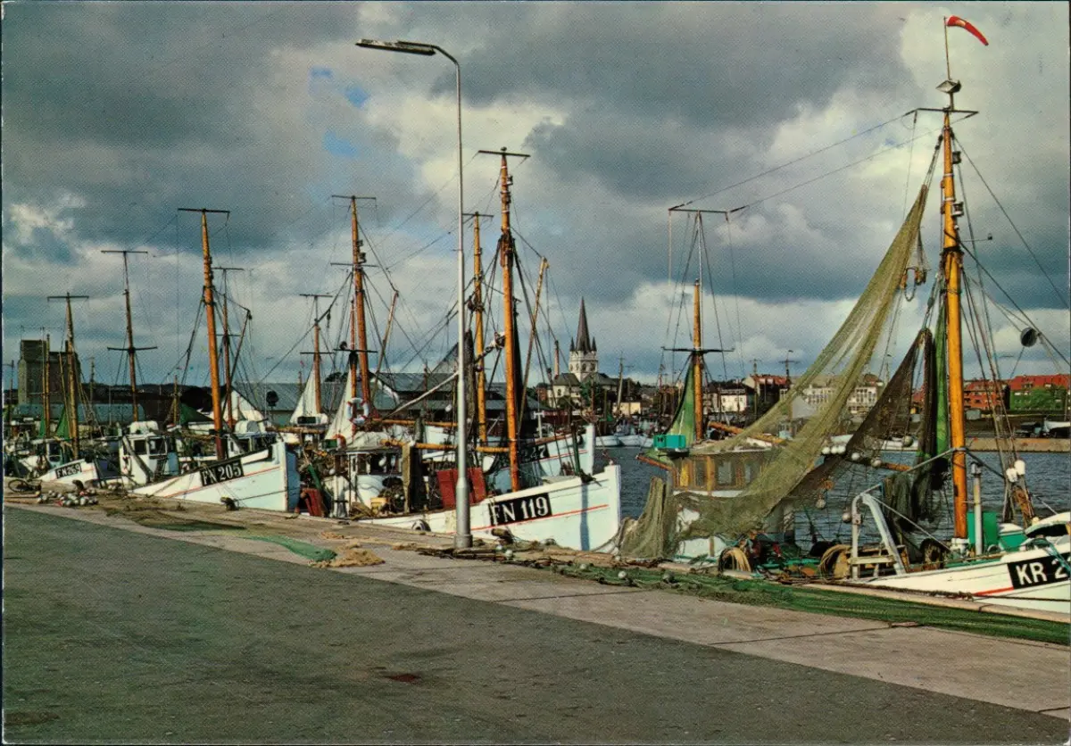Postcard Frederikshavn Ortsansicht Hafen Fischer-Kutterboote 1980
