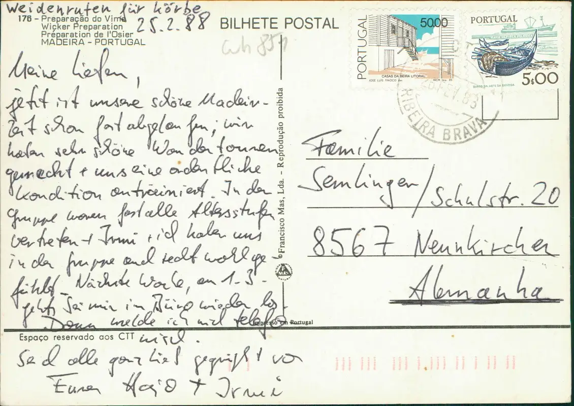 Postcard Funchal Préparation de l'Osier Wicker Preparation 1988