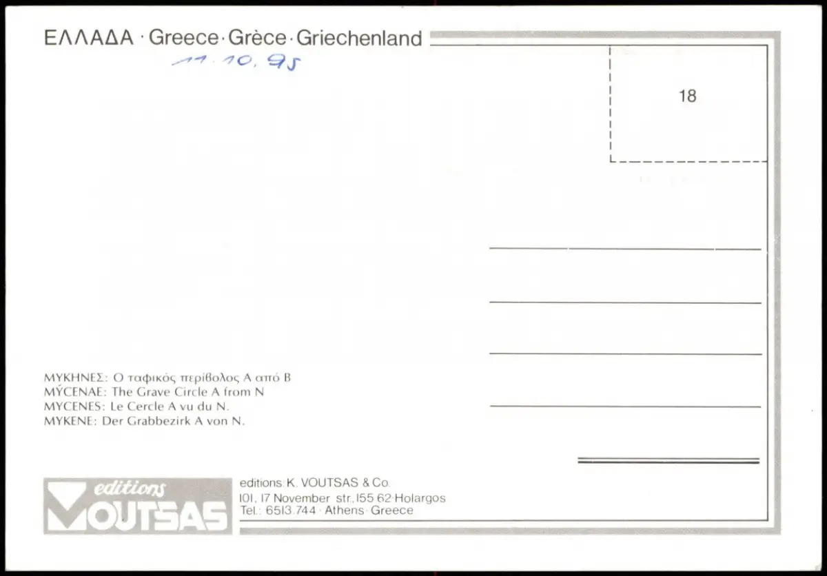 Postcard .Griechenland MYCENAE: The Grave Circle A from N MYCENES 1995