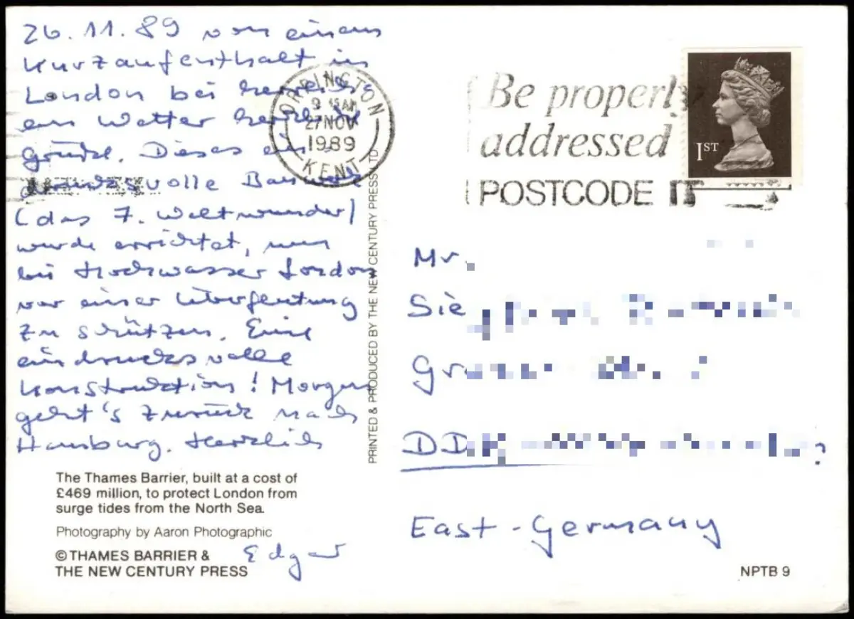 Postcard .Großbritannien England Thames Barrier 1989