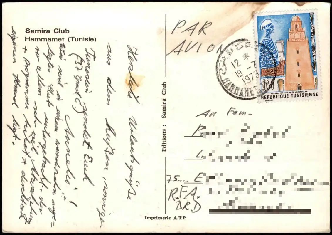 Postcard Hammamet Samira Club Hammamet (Tunisie) 1973